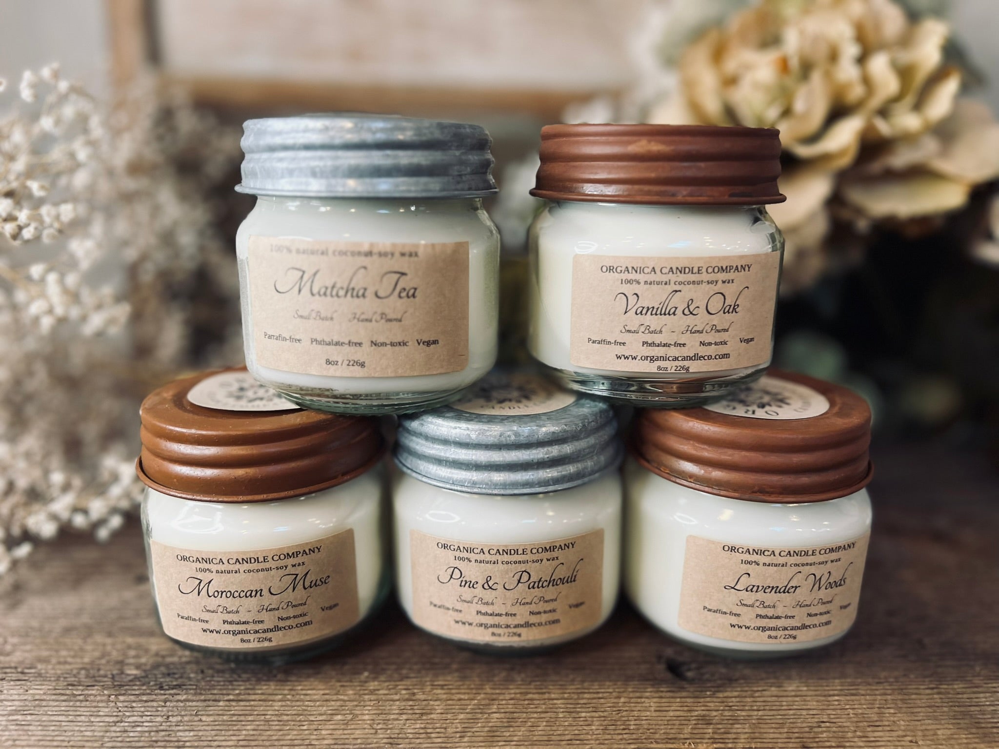 All of our candles are made from 100% natural coconut-soy wax and premium non-toxic fragrance. All ORGANICA candles are phthalate-free, paraffin-free, vegan, and nontoxic.