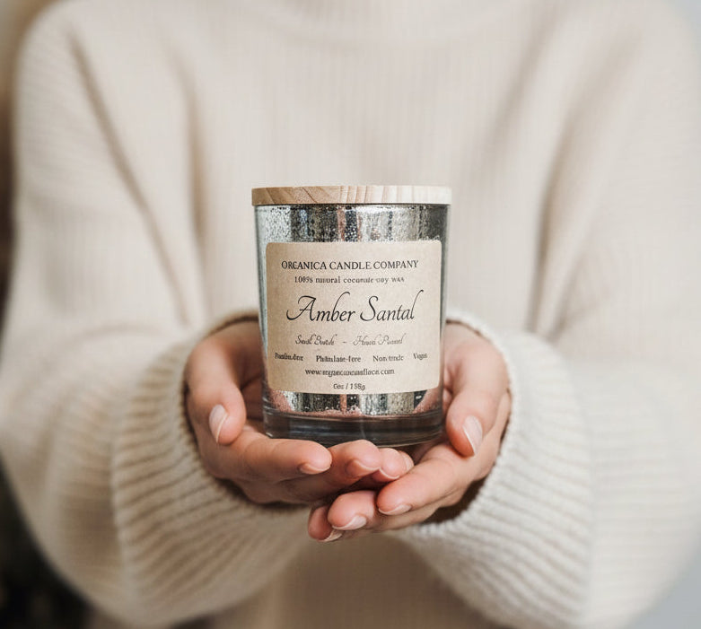 Embrace the grounded elegance of Amber Santal, a sensuously warm hand-poured coconut-soy candle. Rich amber and sandalwood blend with aromatic cedar and spiced notes of fennel, ginger, and cardamom. The result is a luxurious, enveloping fragrance that transforms your space into a cozy sanctuary of warmth and woodsy comfort.
