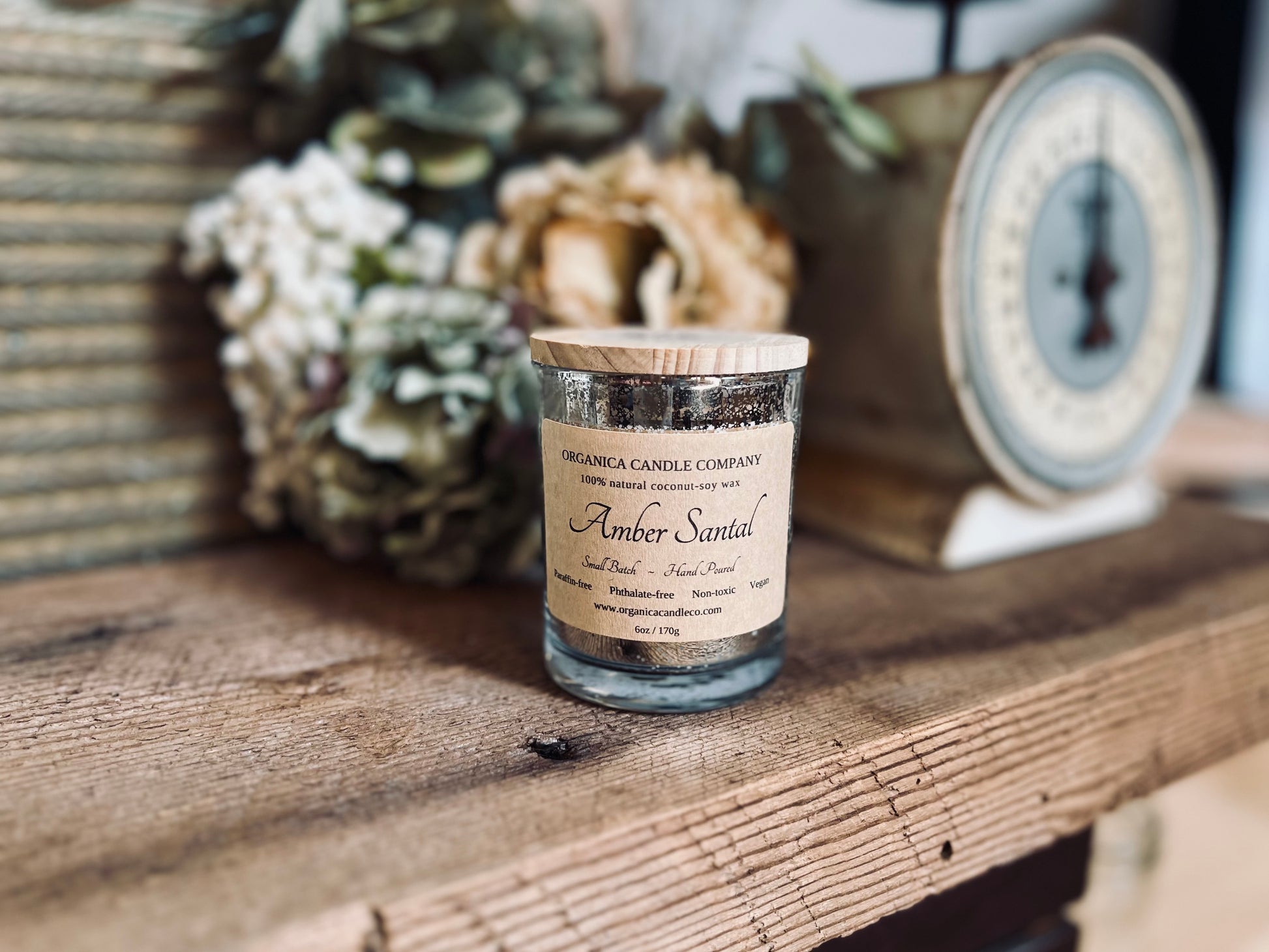 Amber Santal - Mercury Glass & Wood Lid - 6 oz