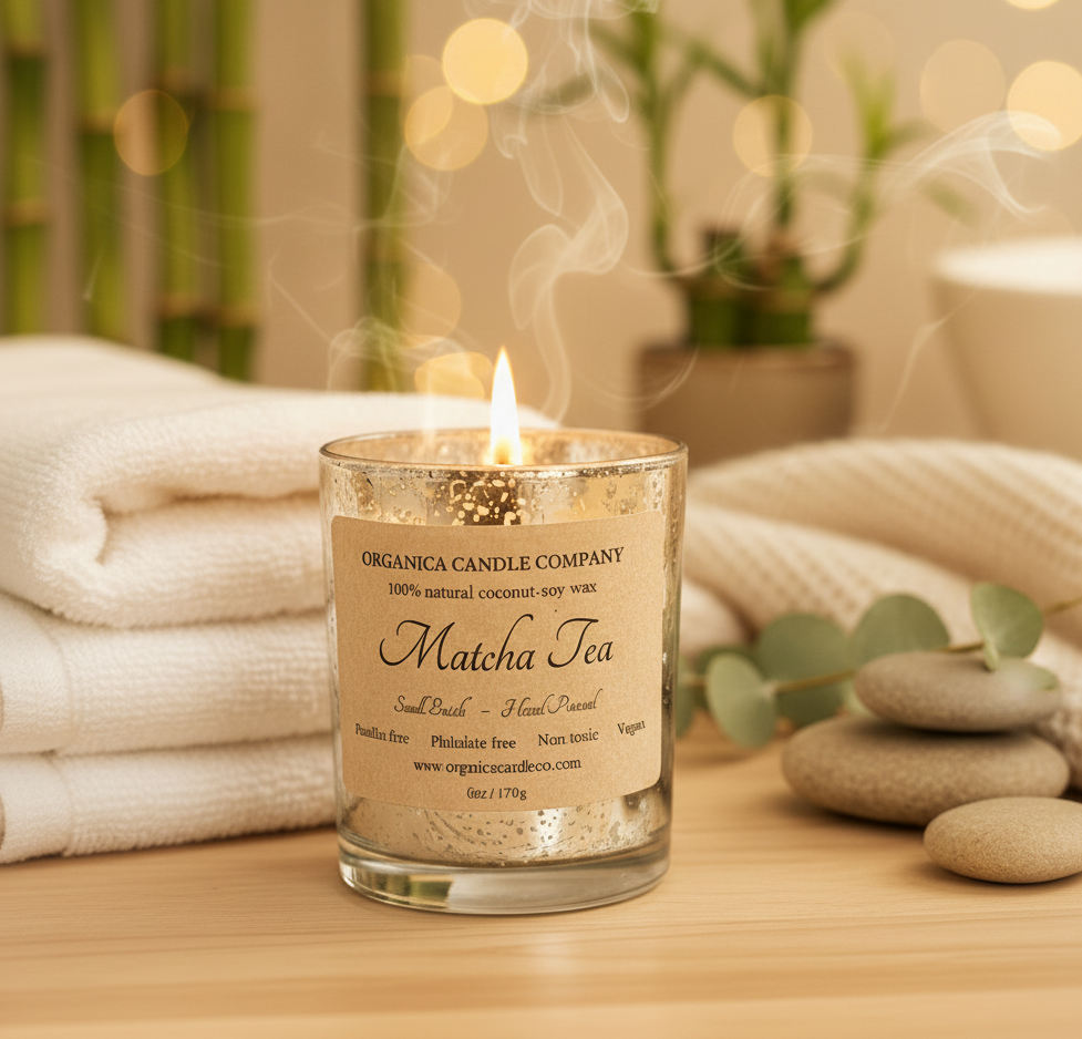 Discover serenity with Matcha Tea, a relaxing spa-like hand-poured coconut-soy candle. This calming fragrance combines earthy matcha with the freshness of lemongrass and bergamot, combined with notes of ginger, jasmine, black tea, and sandalwood. The result is a scent that wraps your space in zen-like tranquility.
