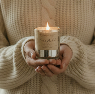 The elegant mercury glass vessel can be repurposed after the candle is finished. Simply scoop out the wax and wash with a soft sponge and warm soapy water.